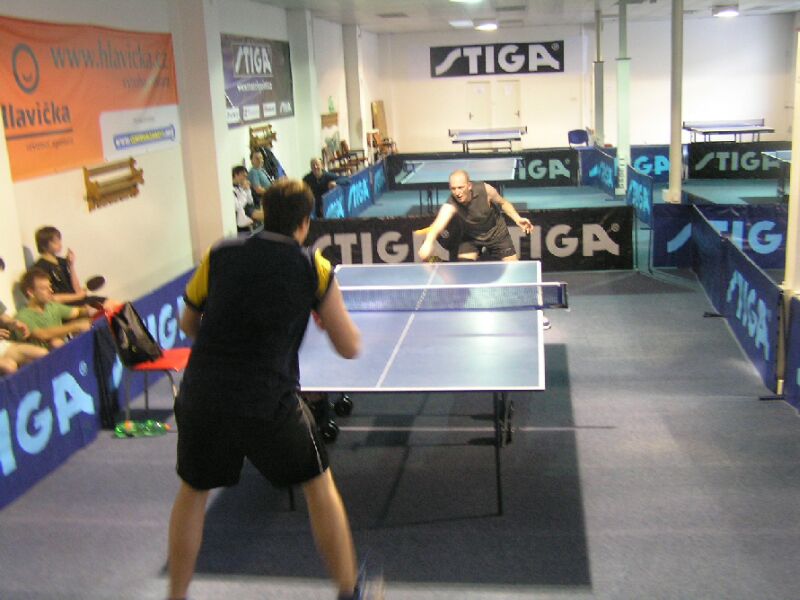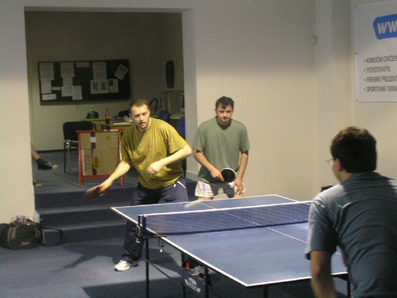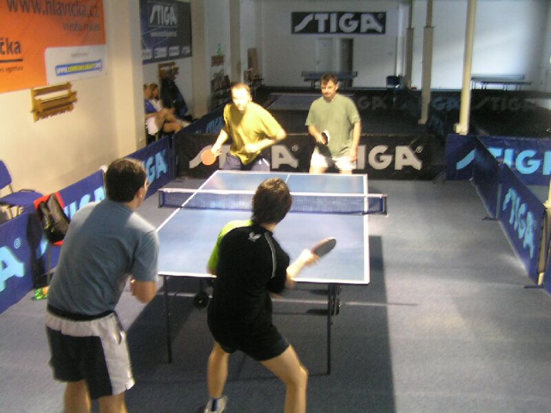 Čtyřhra Vřešťála se Svatošem proti Chlumskému a Boltíkovi.